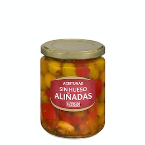 El aliño de estas aceitunas incluye ingredientes como ajo, pimiento rojo, orégano y aceite de oliva virgen extra. Estos ingredientes se combinan en las proporciones correctas para darle a las aceitunas un sabor único y delicioso. El resultado final es un producto que se destaca por su sabor suave, equilibrado y lleno de matices.