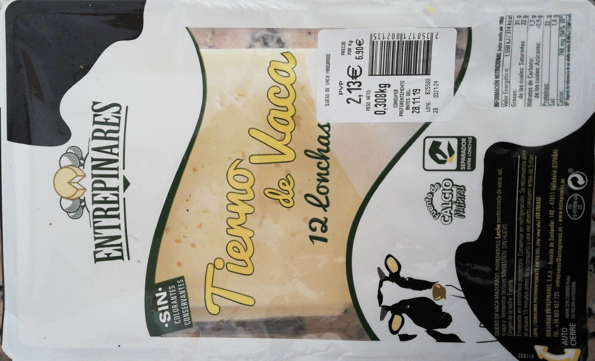 - Nutrición y beneficios del queso tierno de vaca Entrepinares en lonchas